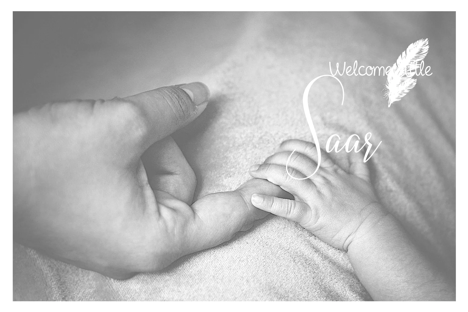Deze liggende zelf-maken-geboortekaart heeft een foto-achtergrond met een wit kader en leuke veertjes. De naam wordt gedrukt in luxe goudfolie! Leuk voor de geboorte van een meisje. Maak dit kaartje zelf naar wens in de online editor en schrijf eigen teksten op de achterkant!