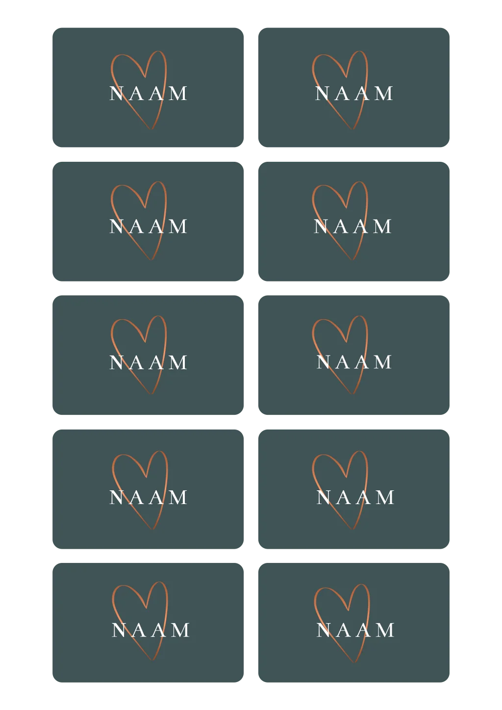 Naamkaartje met hartje in koperkleur en naam