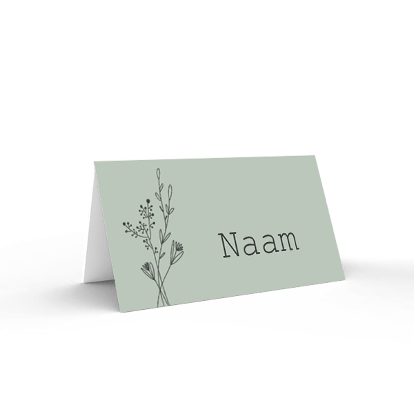 Naamkaartjes met zwarte bloemen op groen - 15 stuks