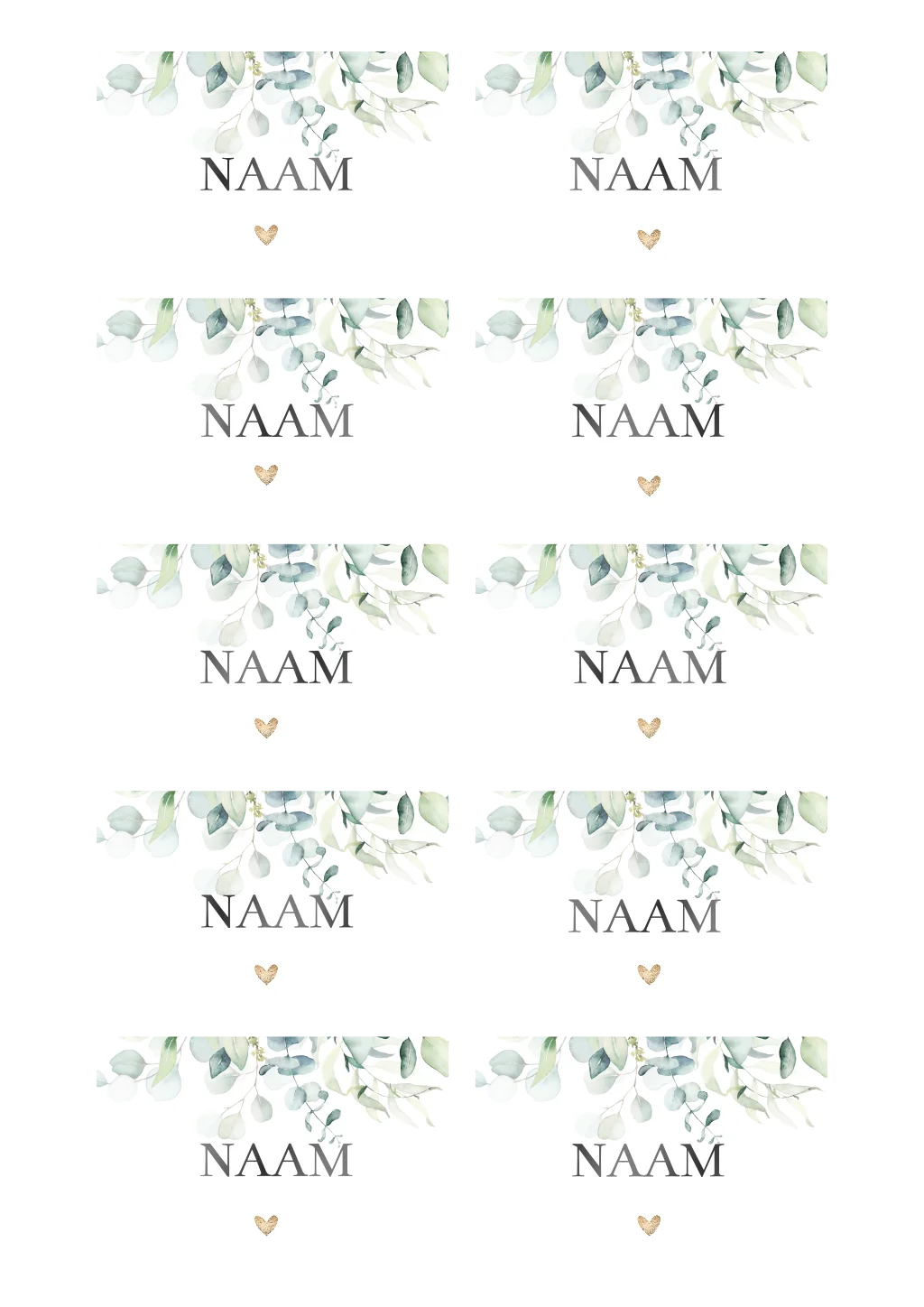 Naamkaartjes met watercolour eucalyptus takjes
