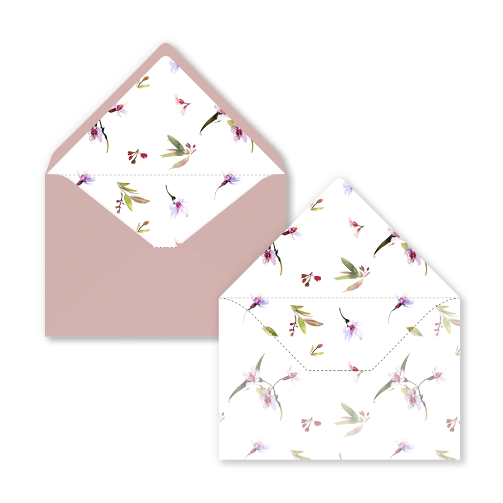 Open, laat je verrassen en sta versteld! Wij bieden envelopinzetstukken voor de volgende envelopformaten: 12x18, 14x14 en 22x11. Op verzoek kunnen we dit ontwerp wijzigen in een ander formaat of een inzetstuk maken in de stijl van uw trouwkaart.