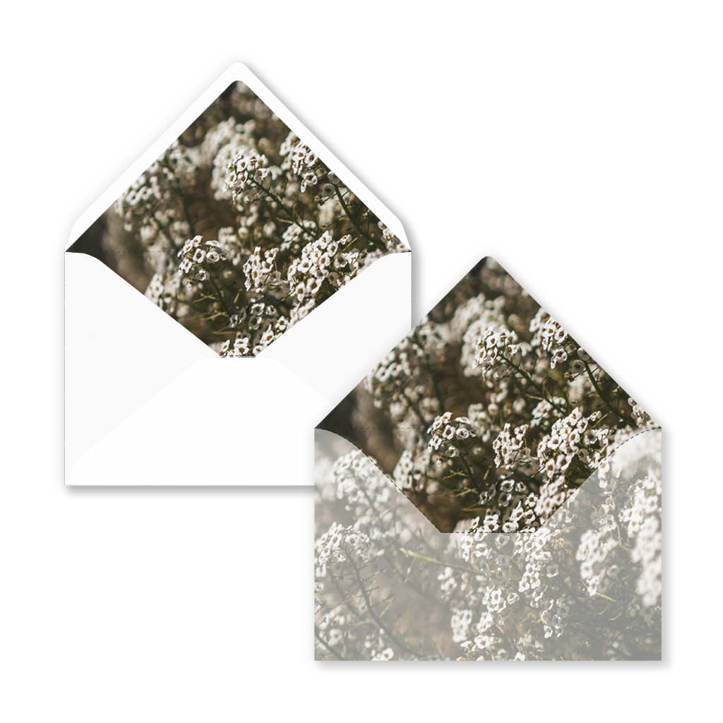 Open, laat je verrassen en sta versteld! Wij bieden envelopinzetstukken voor de volgende envelopformaten: 12x18, 14x14 en 22x11. Op verzoek kunnen we dit ontwerp wijzigen in een ander formaat of een inzetstuk maken in de stijl van uw trouwkaart.
