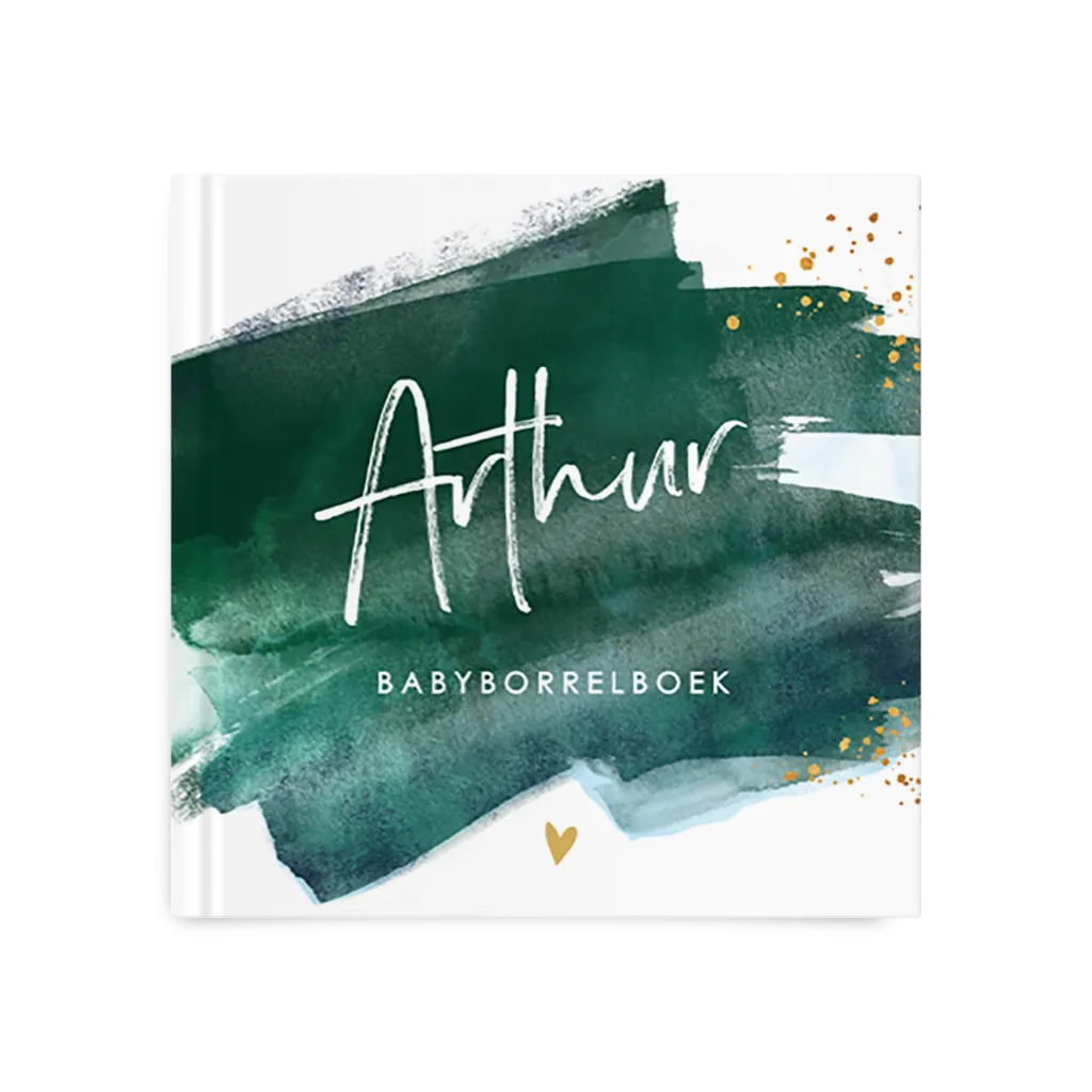 Babyborrelboek met groene waterverf en spetters