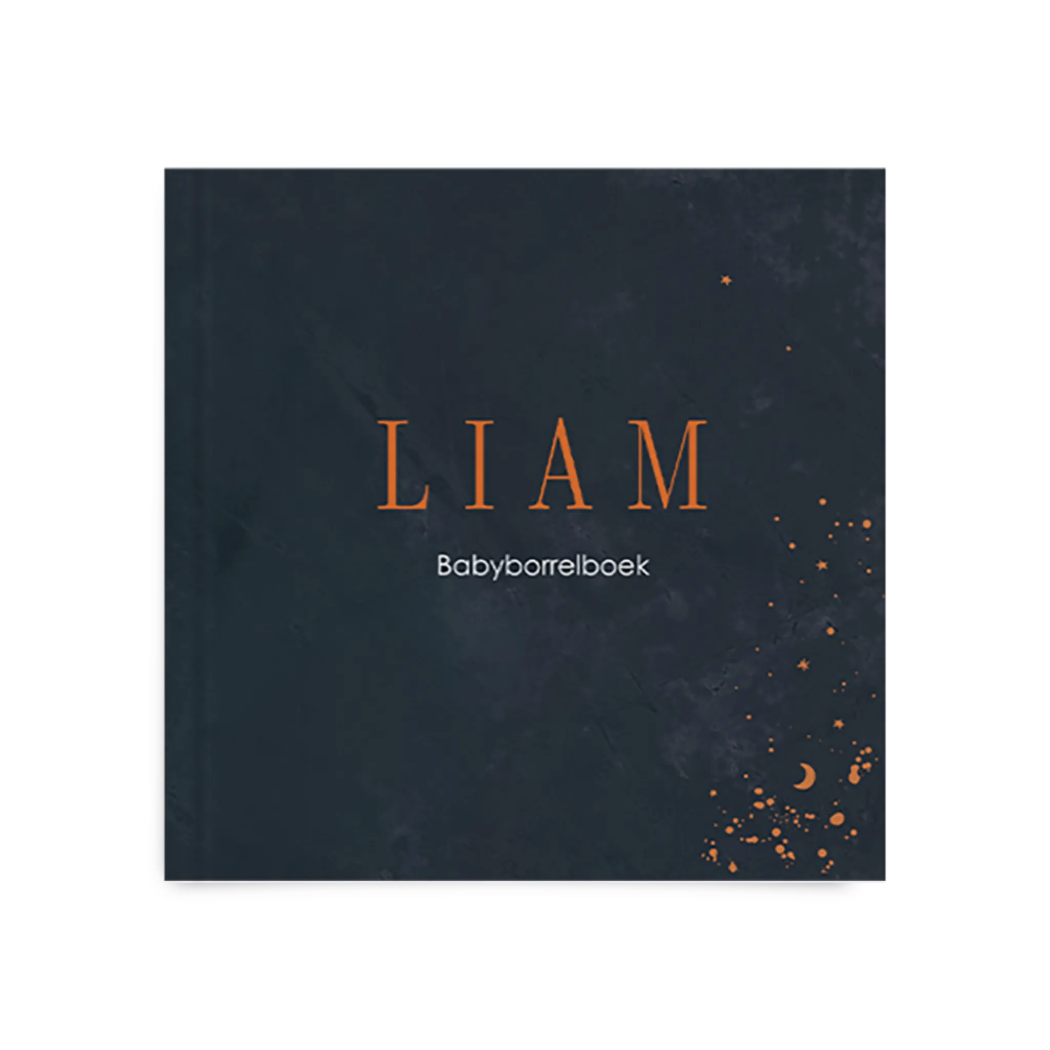 Babyborrelboek met maan en spetters - vierkant 20x20