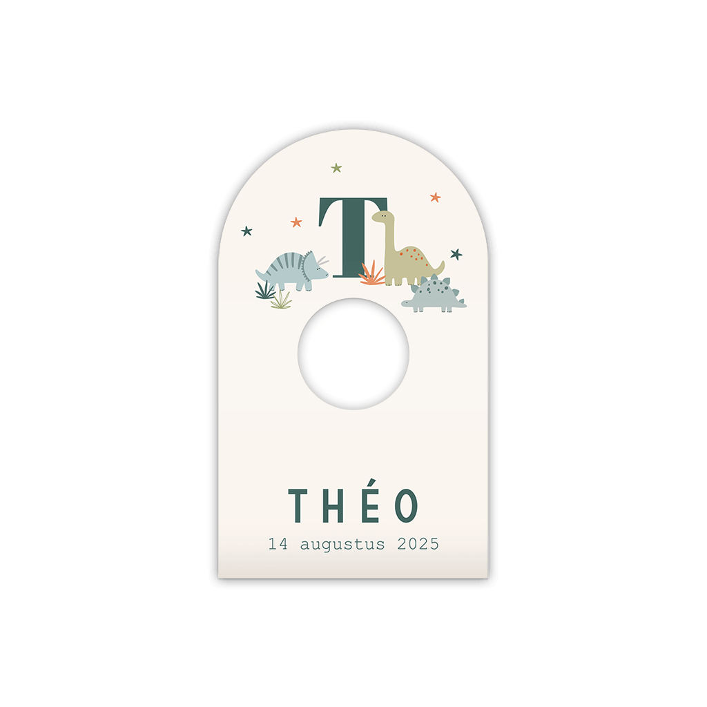 Boogkaartje met schattige dinootjes en een rond doorkijkje voor je doopsuiker.