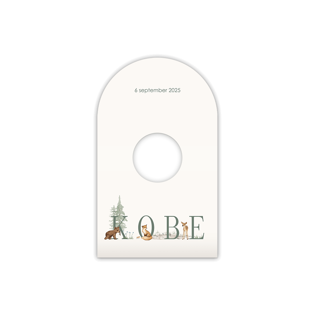 Boogkaartje met schattige bosdieren en ronde uitsneden