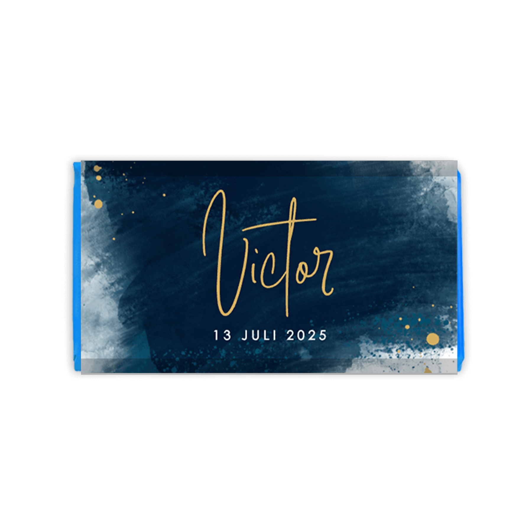 Chocoladereep met blauwe waterverf en goudspetters