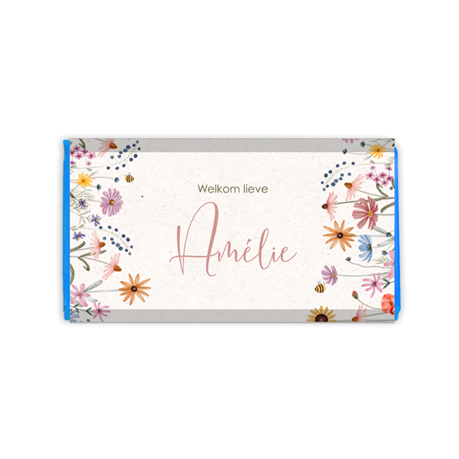 • De chocolade blijft in de originele verpakking en wordt omwikkeld met het gepersonaliseerde ontwerp