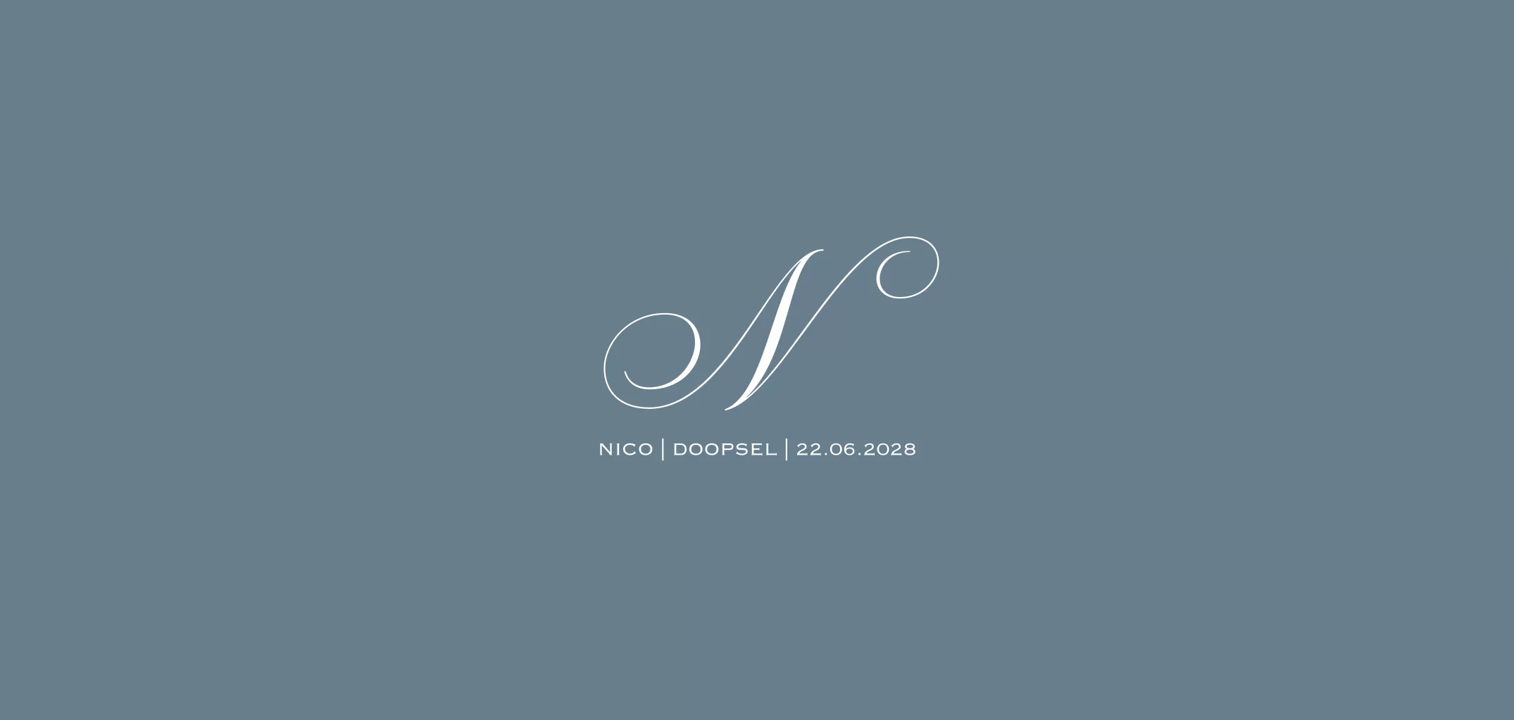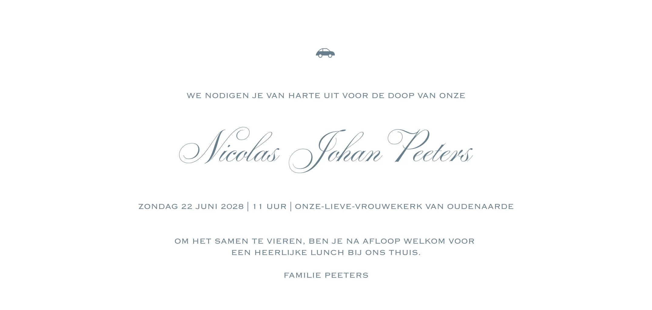 Elegant doopkaartje met klassieke typografie en blauwe achtergrond