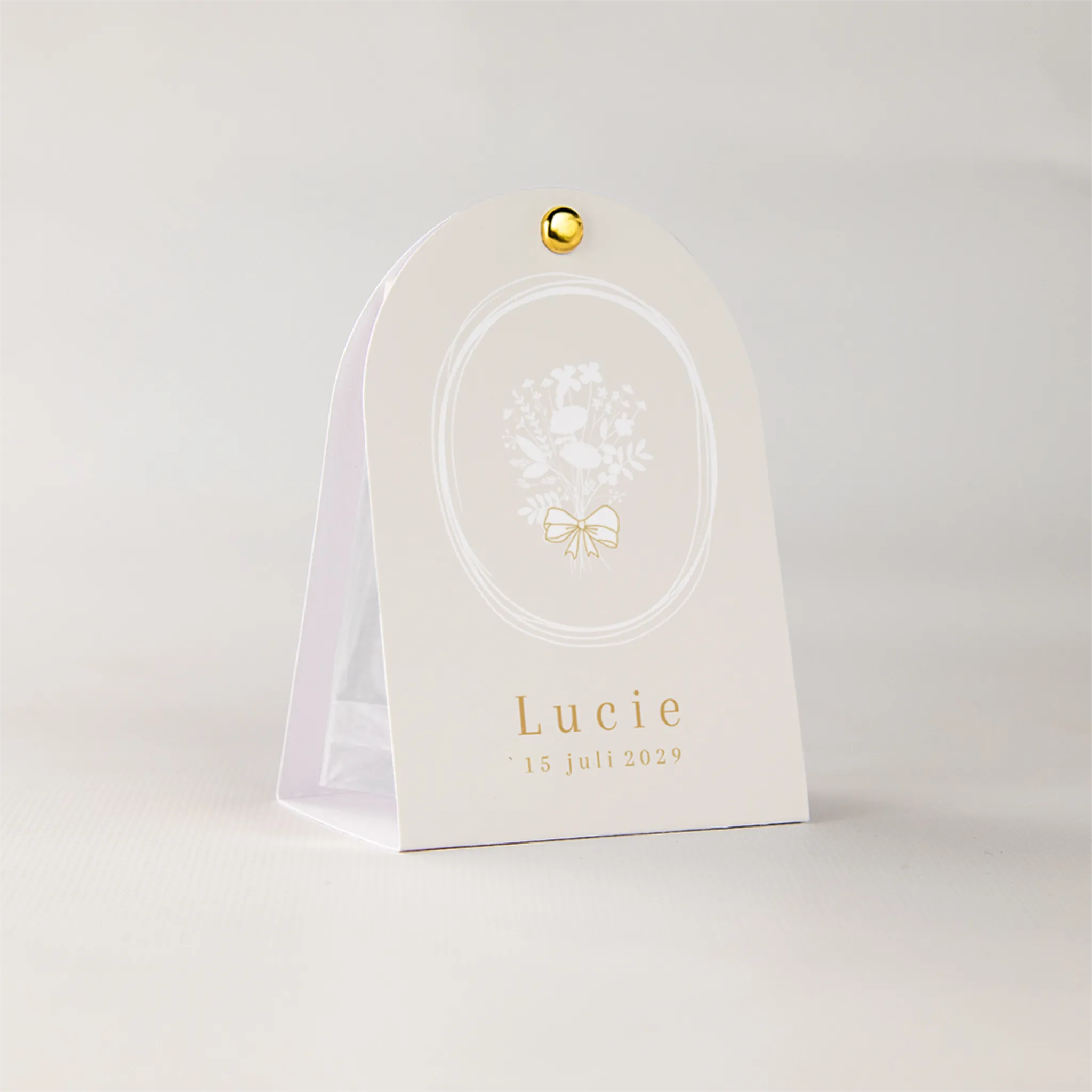 Doopsuiker tentkaartje met bloemen strikje