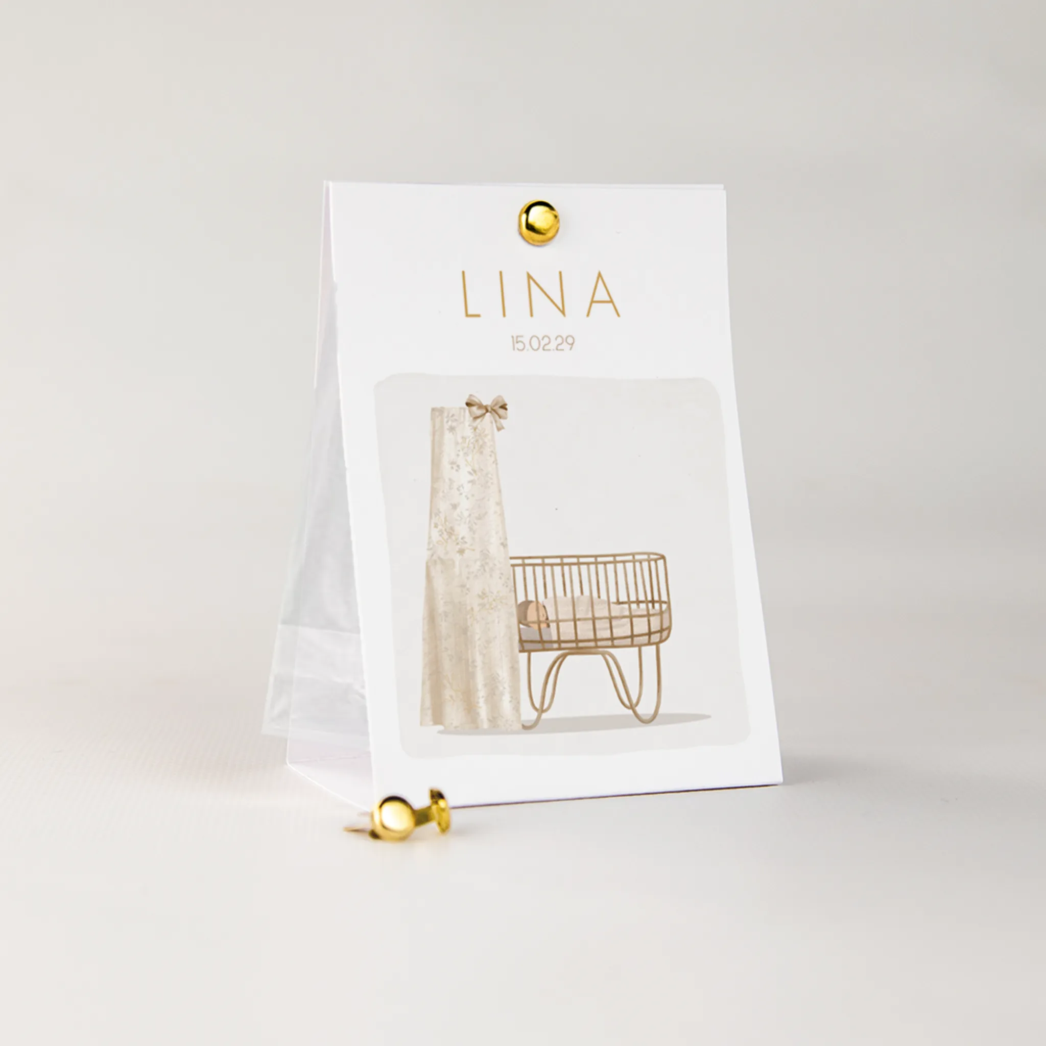 Doopsuiker tentkaartje meisje wieg en hemel