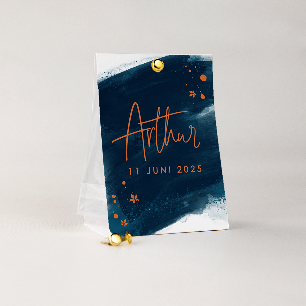 Mooi snoepzakje voor de doopsuikers in wit met donkerblauwe waterverf.