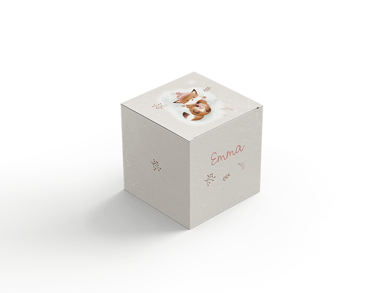 Het doosje is te bestellen in 2 formaten. We hebben een klein formaat, deze is 5 cm hoog breed en diep. Het grote formaat is 7 cm hoog, breed en diep. Allebei de formaten doosjes worden ongevouwen geleverd. De levertijd van de doosjes zijn 4 werkdagen.