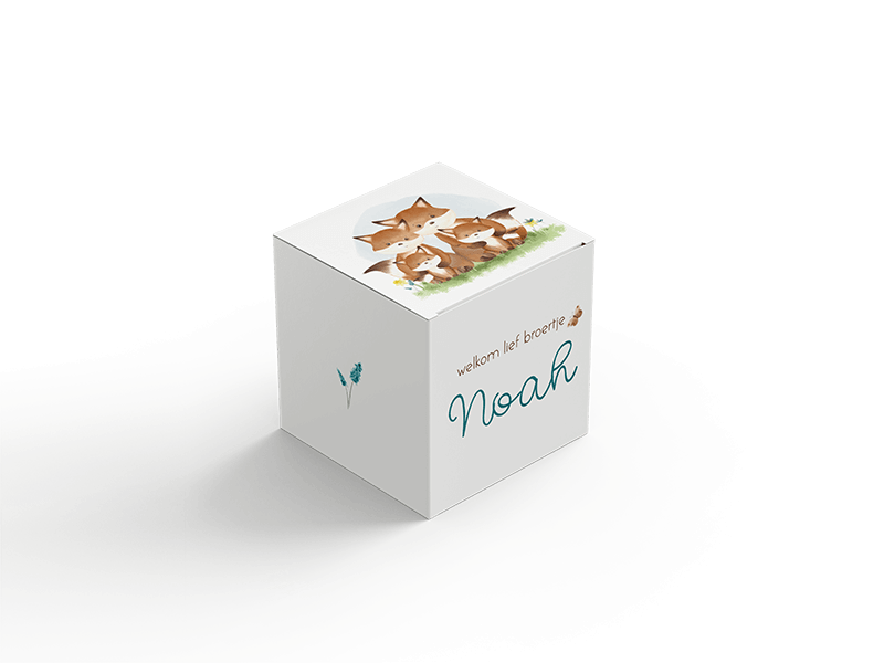 Het doosje is te bestellen in 2 formaten. We hebben een klein formaat, deze is 5 cm hoog breed en diep. Het grote formaat is 7 cm hoog, breed en diep. Allebei de formaten doosjes worden ongevouwen geleverd. De levertijd van de doosjes zijn 4 werkdagen.