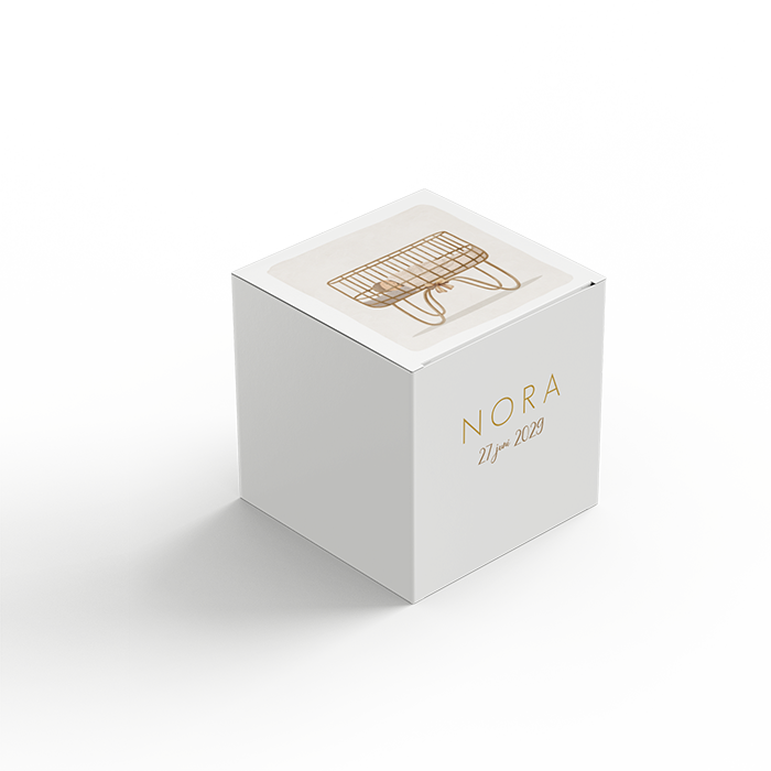 Een schattig doosje voor de doopsuikers met de illustratie van een baby in een wiegje. Het doosje is te bestellen in 2 formaten. We hebben een klein formaat, deze is 5 cm hoog breed en diep. Het grote formaat is 7 cm hoog, breed en diep. Allebei de formaten doosjes worden ongevouwen geleverd. De levertijd van de doosjes zijn 4 werkdagen.| Totaalprijs: 0 |