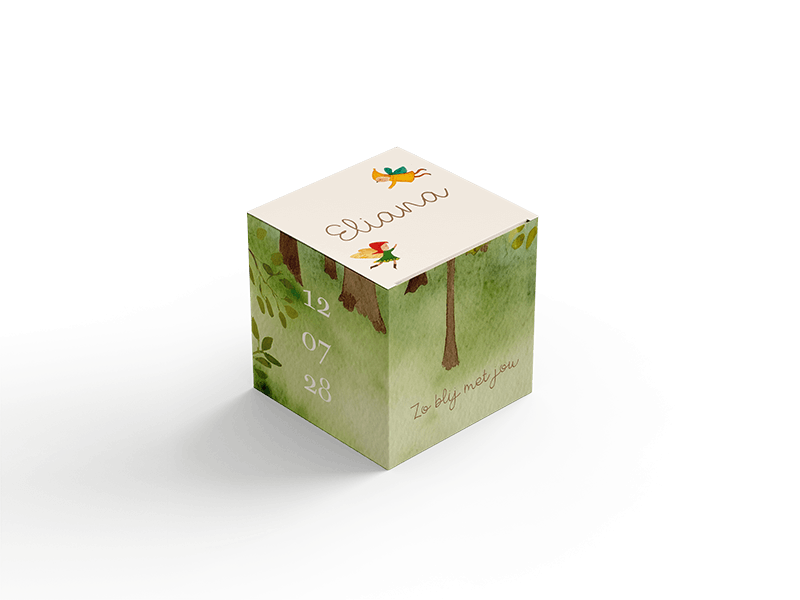 Het doosje is te bestellen in 2 formaten. We hebben een klein formaat, deze is 5 cm hoog breed en diep. Het grote formaat is 7 cm hoog, breed en diep. Allebei de formaten doosjes worden ongevouwen geleverd. De levertijd van de doosjes zijn 4 werkdagen.