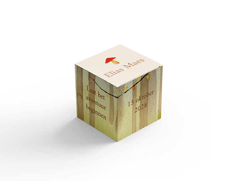 Het doosje is te bestellen in 2 formaten. We hebben een klein formaat, deze is 5 cm hoog breed en diep. Het grote formaat is 7 cm hoog, breed en diep. Allebei de formaten doosjes worden ongevouwen geleverd. De levertijd van de doosjes zijn 4 werkdagen.