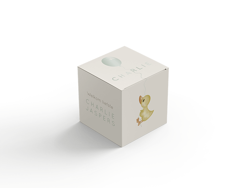 Schattig pastelkleurig doosje voor de doopsuikers met illustratie van een lief eendje en een ballon, dit past perfect bij het geboortekaartje. Het doosje is te bestellen in 2 formaten. We hebben een klein formaat, deze is 5 cm hoog breed en diep. Het grote formaat is 7 cm hoog, breed en diep. Allebei de formaten doosjes worden ongevouwen geleverd. De levertijd van de doosjes zijn 4 werkdagen.| Totaalprijs: 0 |