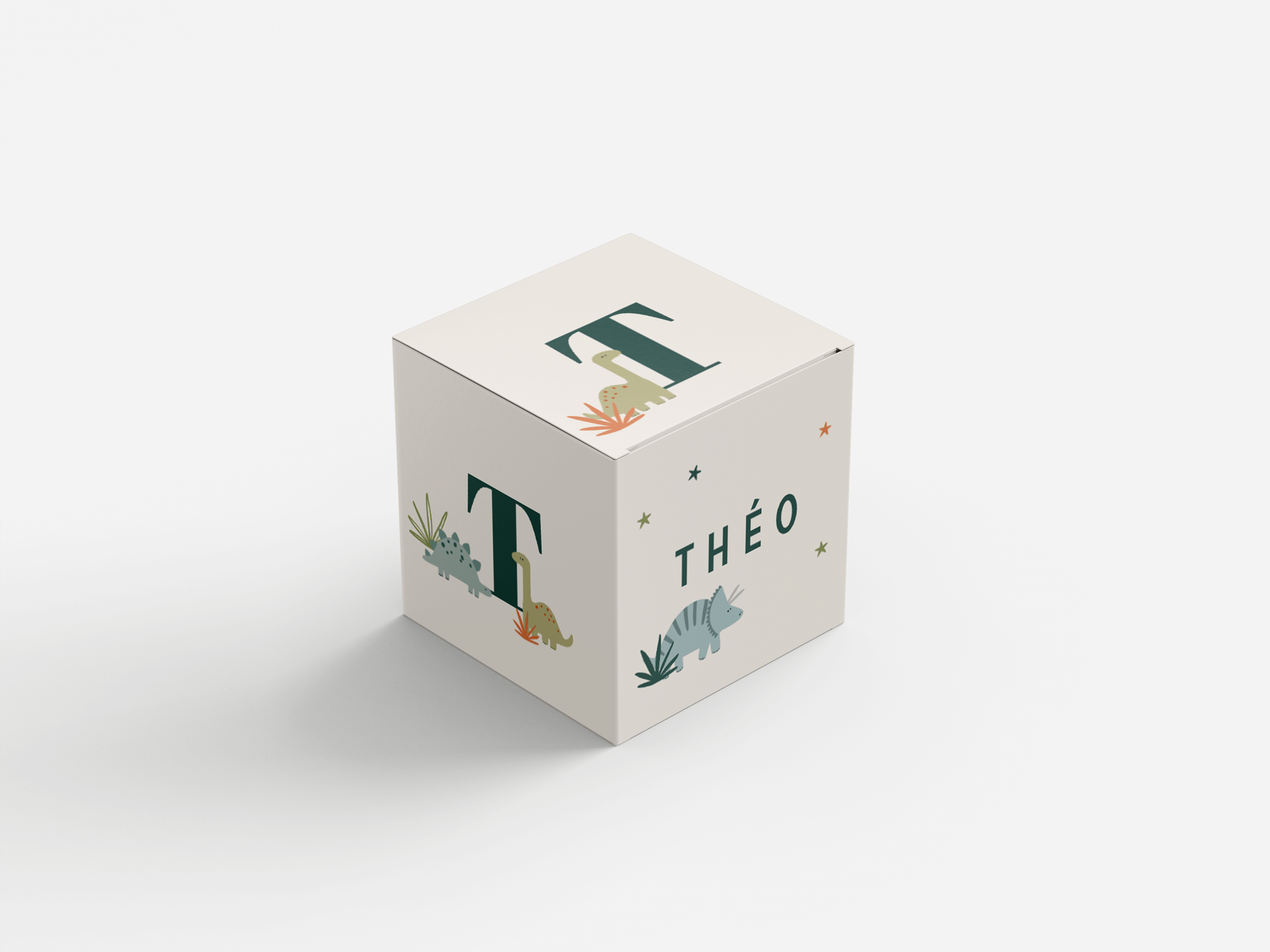 Doopsuikerdoosje met initiaal en dino's