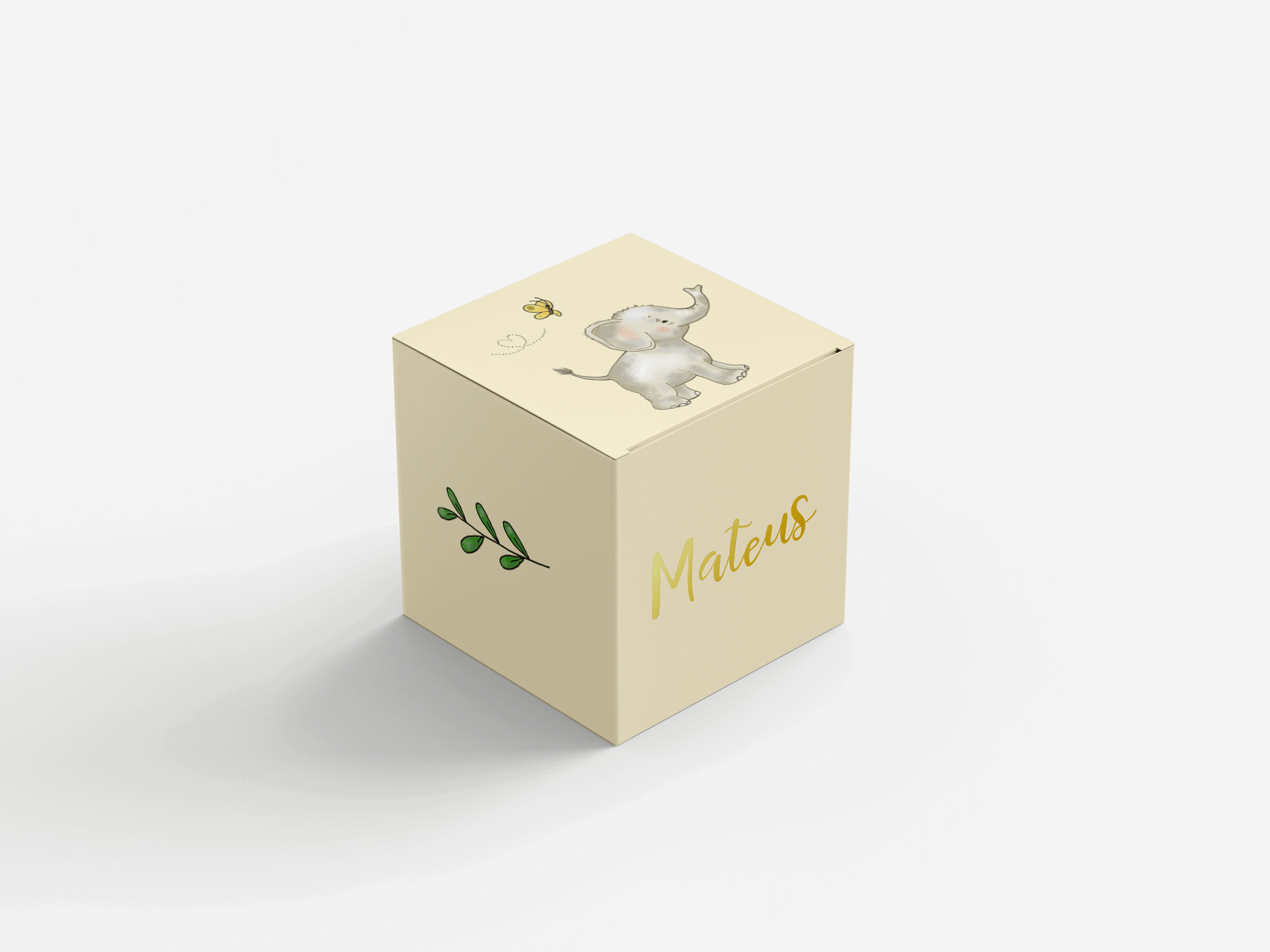 Doopsuikerdoosje met lief olifantje en goudfolie