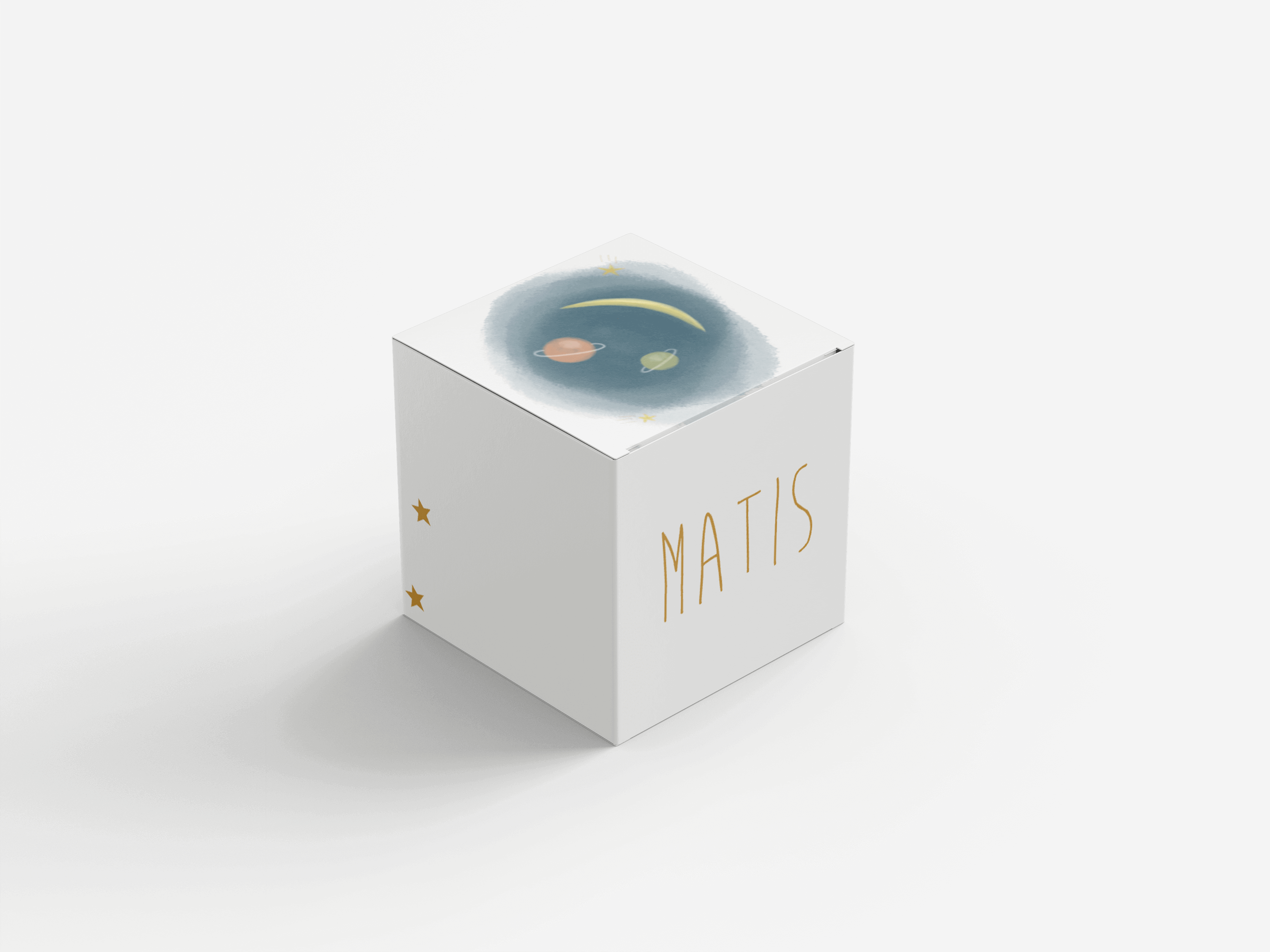 Doopsuikerdoosje met planeten en sterretjes