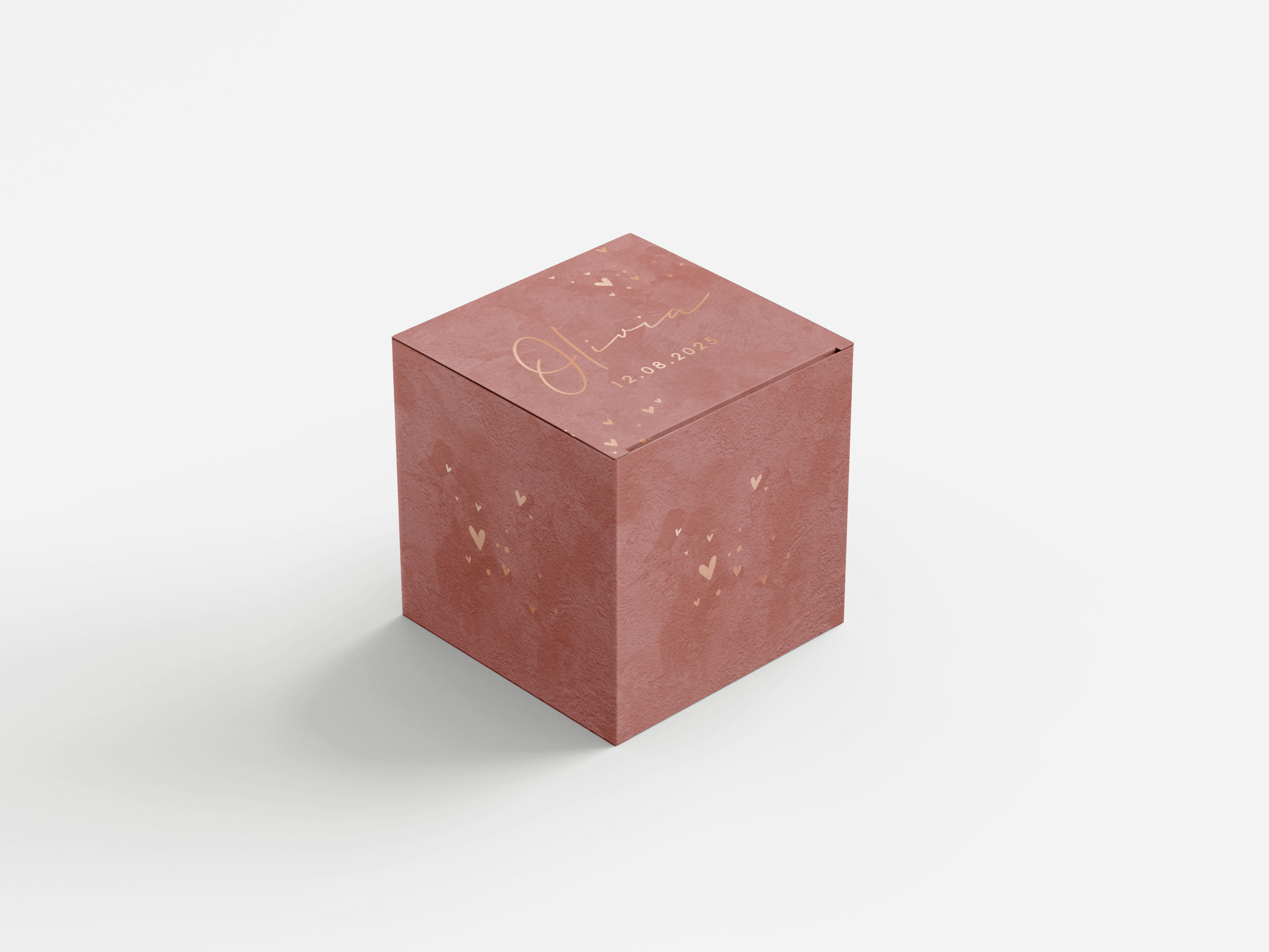 Doopsuikerdoosje velvet roze met roségoudfolie hartjes