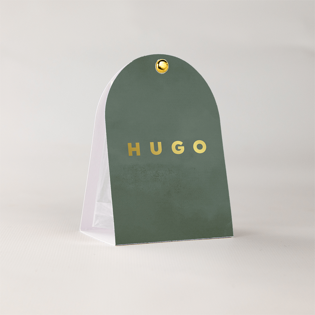 Mooi snoepzakje voor de doopsuikers in boogvorm, op de groene achtergrond staat de tekst in goudfolie. Specificaties:| Totaalprijs: 0 |