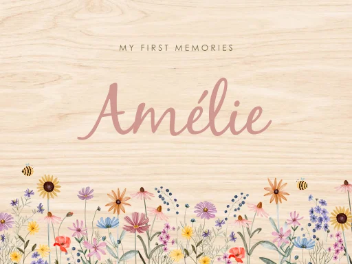 Houten bewaarkist met naam en kleurrijke veldbloemen