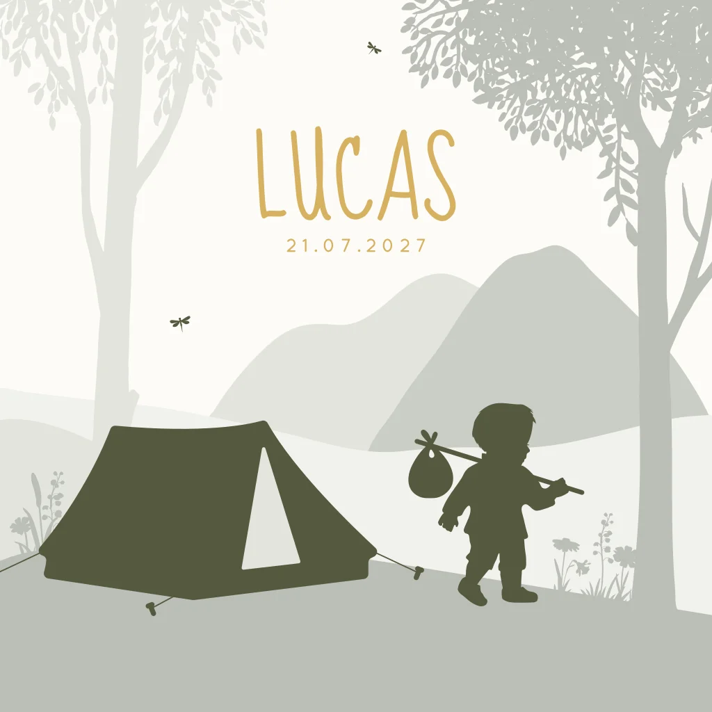 Wat een avontuurlijk kaartje is dit voor jullie kleine jongen! Prachtig in stoere groene tinten met een silhouetje.