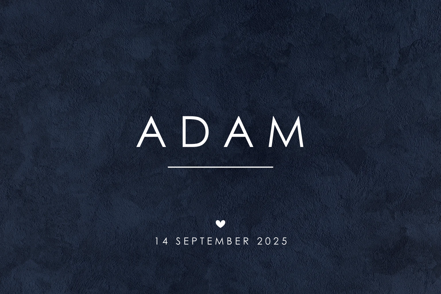 Een luxe geboortekaartje met een donkerblauwe velvetlook achtergrond. Enkele details zijn van goudfolie. Liever een andere kleur? Bewerk dan het kaartje volledig naar eigen wens in de editor