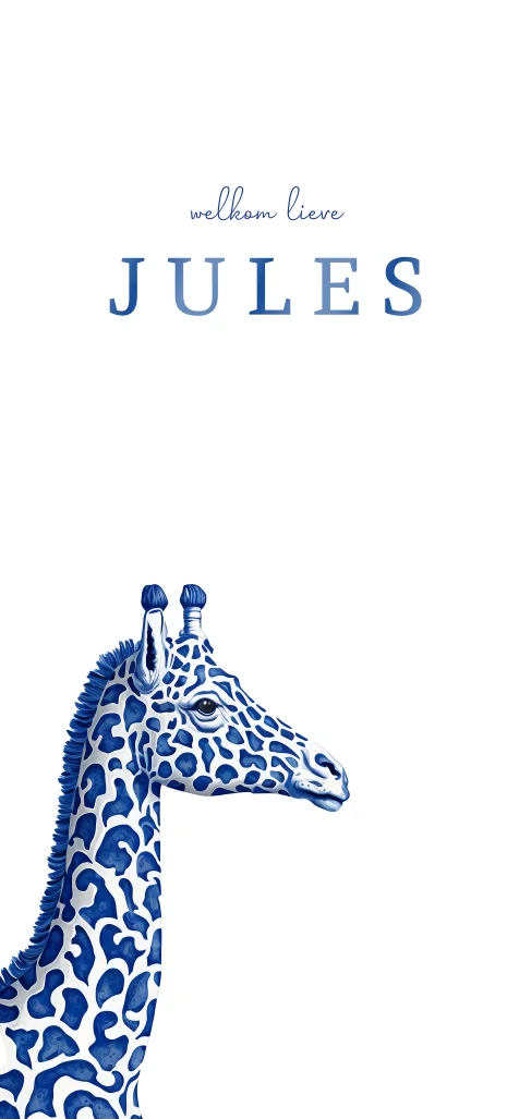 Geboortekaart giraf blauw met glansfolie