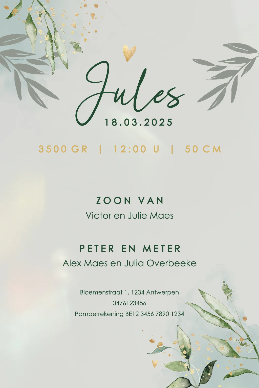 Geboortekaartje van acrylglas met eucalyptus takjes