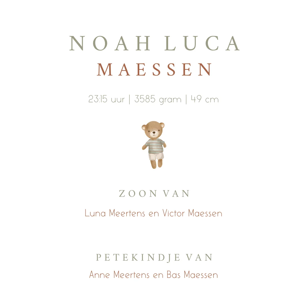 Een geboortekaartje om bij weg te dromen. Op het witte kaartje staat een illustratie van een baby die heerlijk ligt te slapen ondereen dekentje. Lettertypes en kleuren zijn eenvoudig naar wens aan te passen in de online editor.| Totaalprijs: 0 |