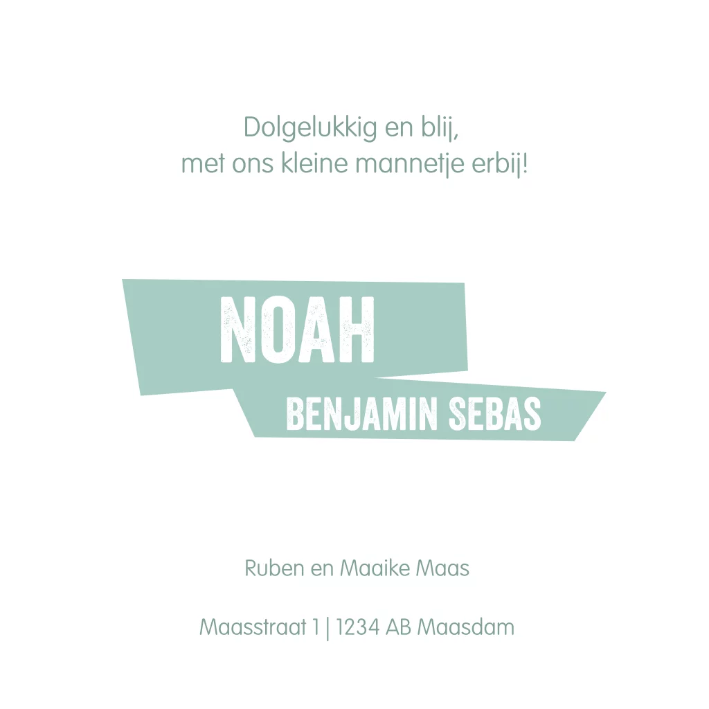 Dit leuke geboortekaartje voor een jongen heeft een foto op de voorkant met geboorte icoontjes en de tekst in een stoer, blauw lettertype. Voeg zelf jouw eigen teksten en foto toe in de online editor.