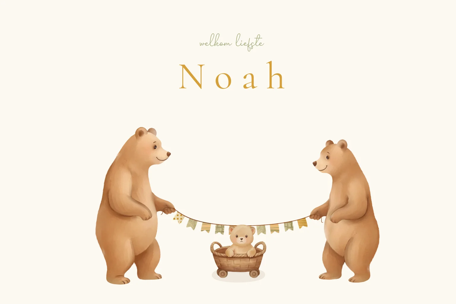 Een lief geboortekaartje met beren om te personaliseren in onze editor. Perfect voor de komst van je kleintje.