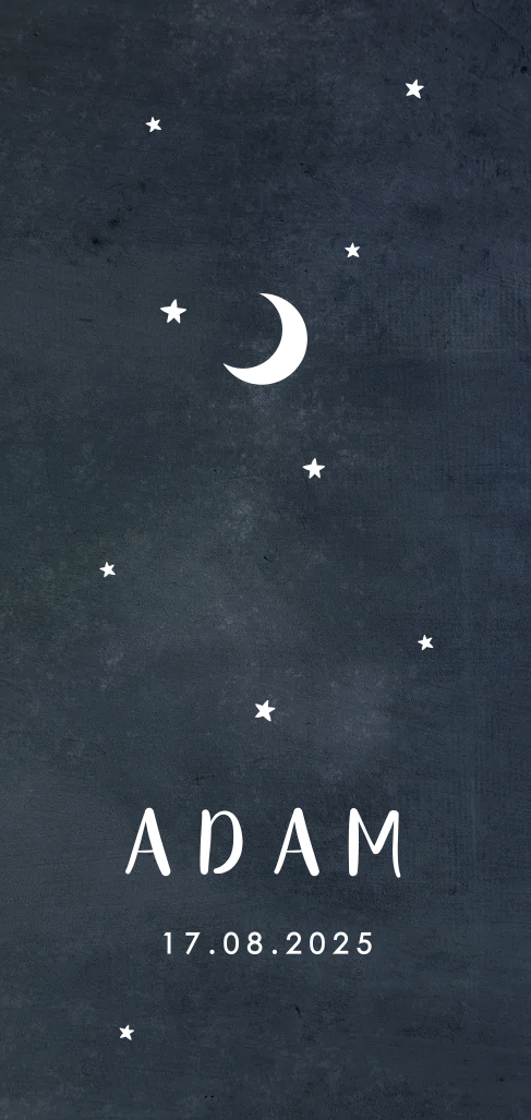 Geboortekaartje jongen donkerblauw met maantje en sterren