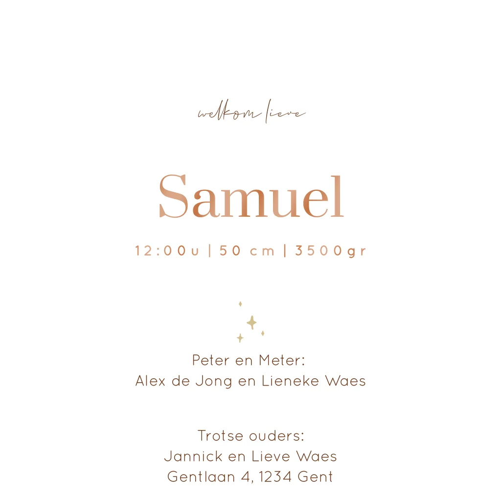 Superstoer voor een zoontje, dit kaartje in bosthema! Op het beige kaartje zit een dromerig uiltje op een boomstam in een nachtelijk bos. Het uiltje komt terug aan de binnenzijde, de naam staat in luxe hoogglans, pas de tekst aan in de online editor en bestel een proefdruk.