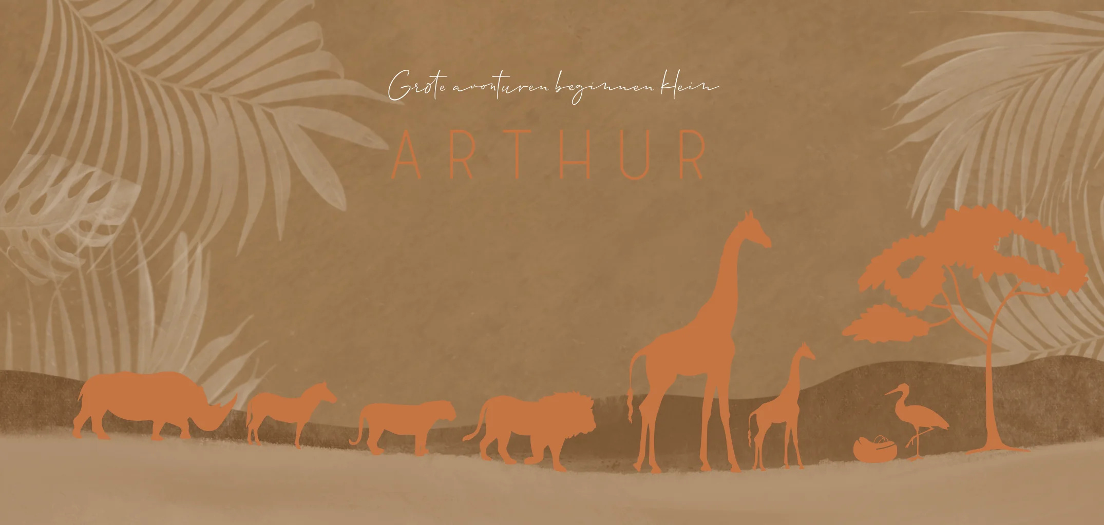 Dit leuke geboortekaartje in panorama formaat is helemaal trendy! De jungledieren lopen naar de ooievaar en het mandje toe. En de bruine achtergrond wordt gesierd door grote palmtakken.| Totaalprijs: 0 |