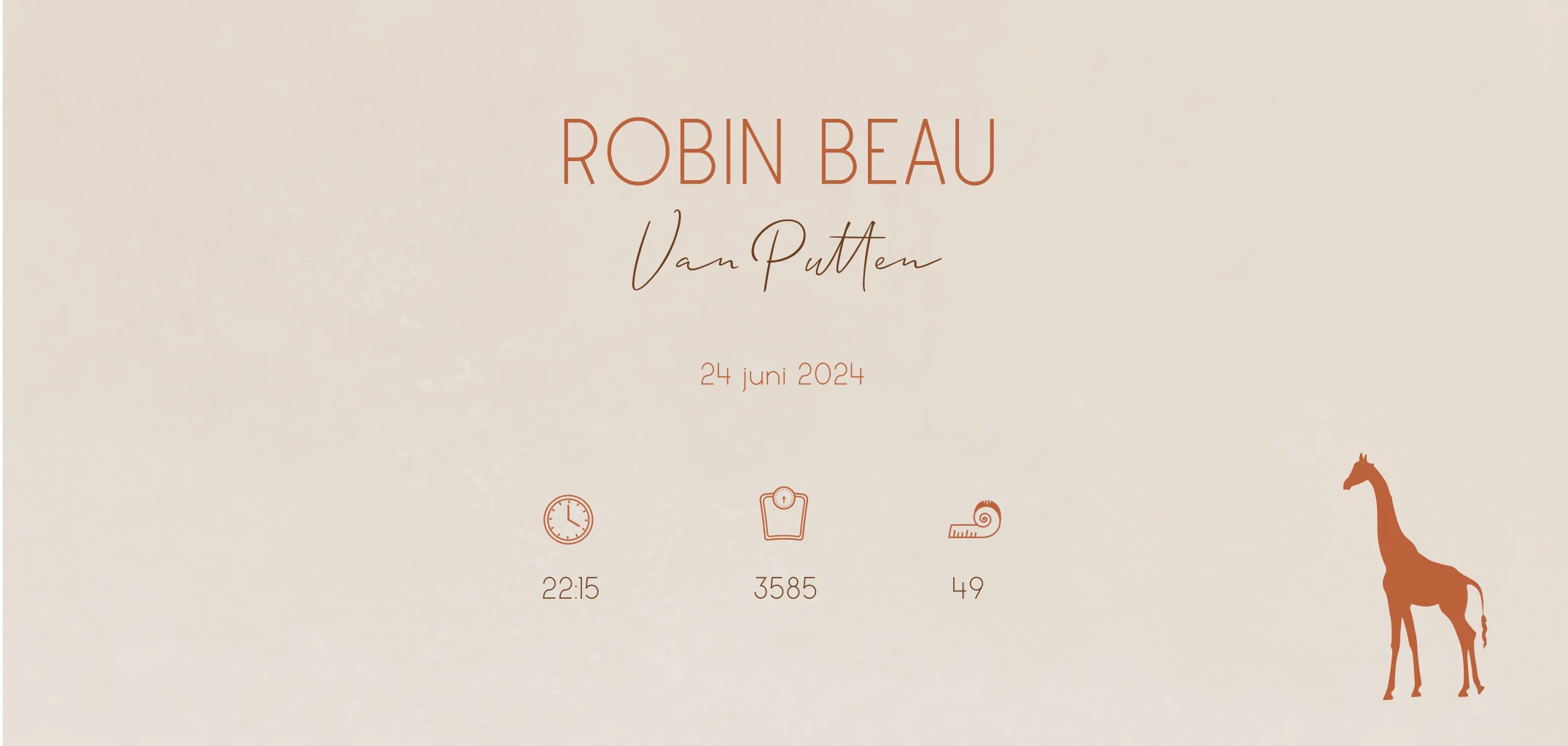 Dit leuke geboortekaartje in panorama formaat is helemaal trendy! De jungledieren lopen naar de ooievaar en het mandje toe. En de bruine achtergrond wordt gesierd door grote palmtakken.