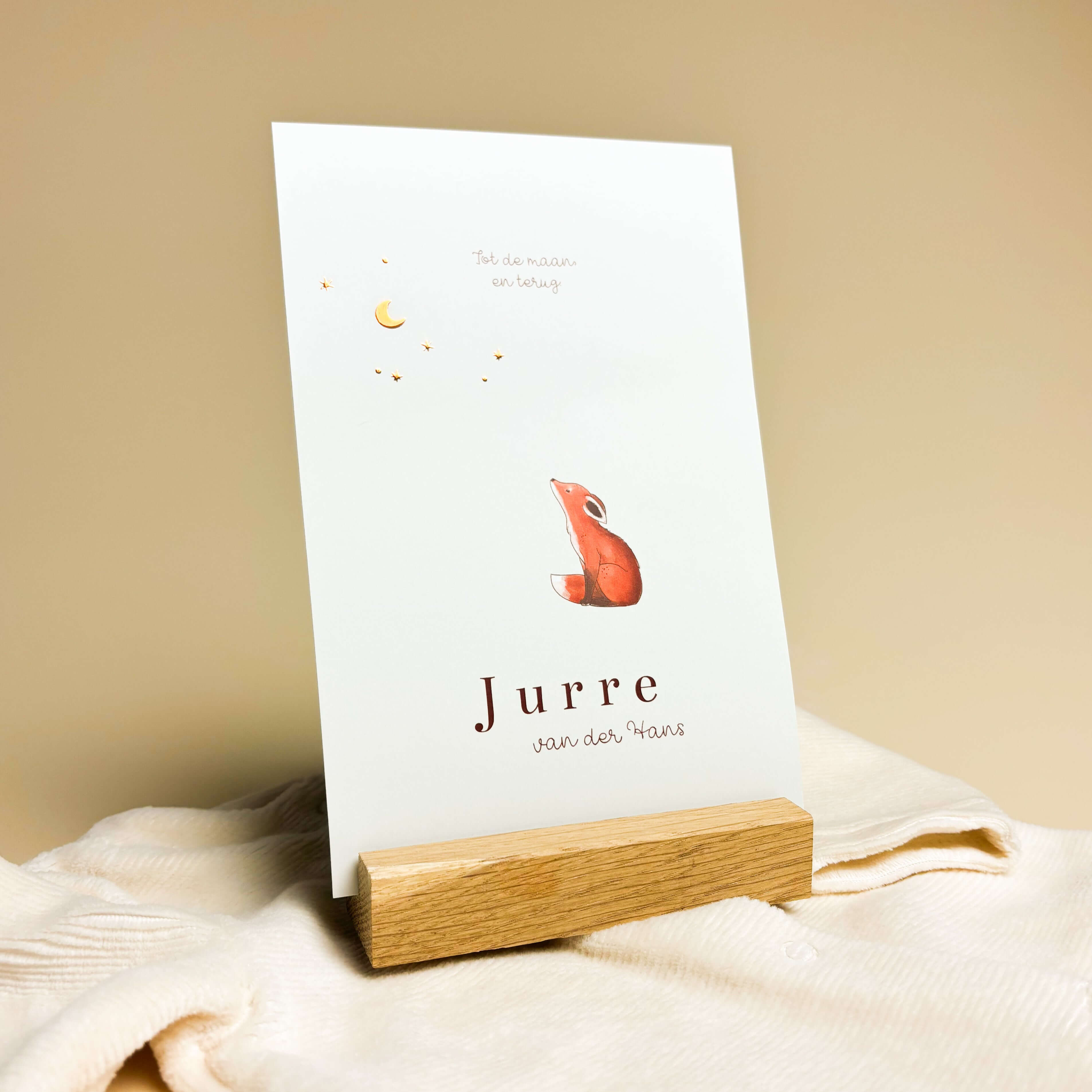 Geboortekaartje met vosje en maan met sterren