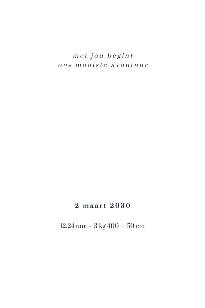 Geboortekaartje met bergen, de maan en sterren. De naam, maan en sterren staan in goudfolie op het kaartje en komen heel mooi uit tegen de donkerblauwe achtergrond. Aan de binnenkant staat de naam van jullie kindje ook in goudfolie gedrukt.
