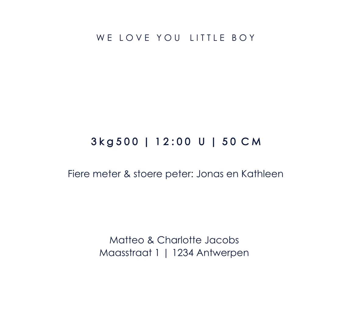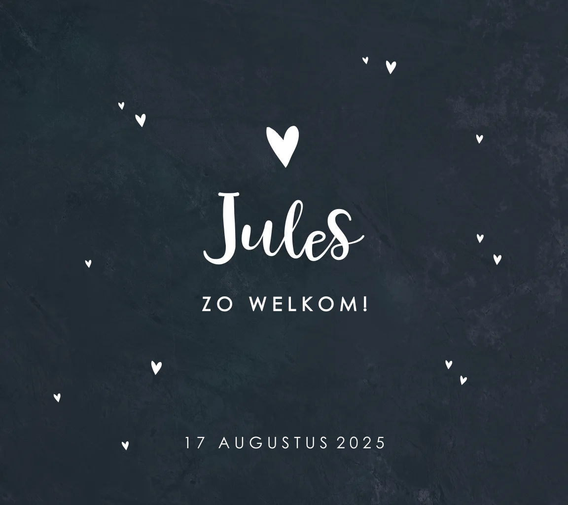 Bij dit hippe babykaartje worden de gouden hartjes en tekst in echt goudfolie gedrukt! Aan de binnenkant van het kaartje kun je zelf een foto van jullie zoontje toevoegen.