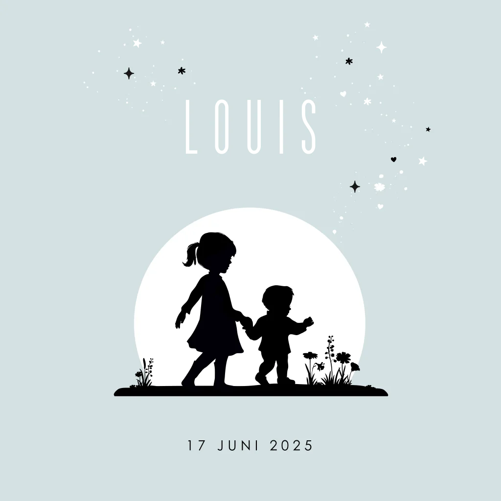 Een hip en lief lichtblauw geboortekaartje met goudlook details voor de geboorte van een broertje. Het kaartje is helemaal naar wens aan te passen in de editor.Bekijk ook ons babyborrelkaartje.