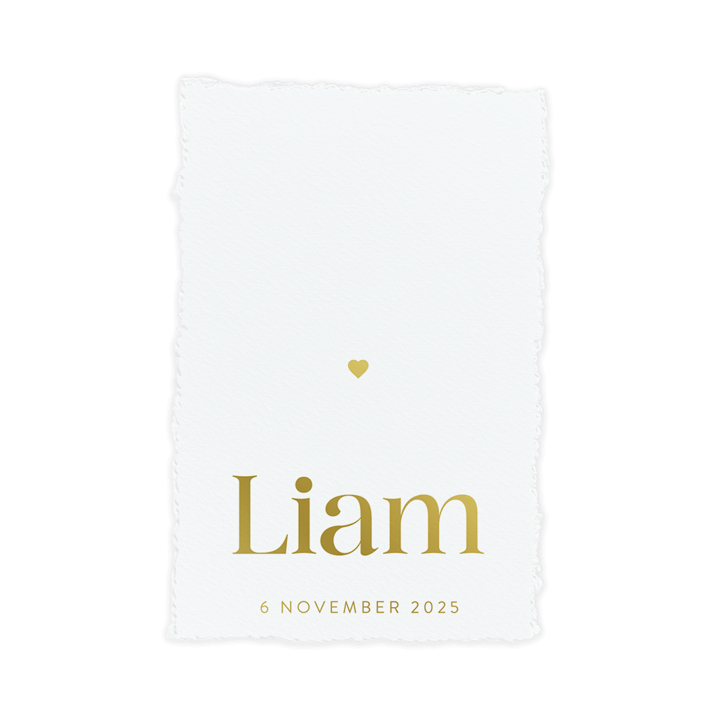 Chique geboortekaartje voor een jongen of meisje, met mooie goudfoliedetails. Het kaartje is in scheppapier-look, op de achterkant staan leuke bijpassende icoontjes.