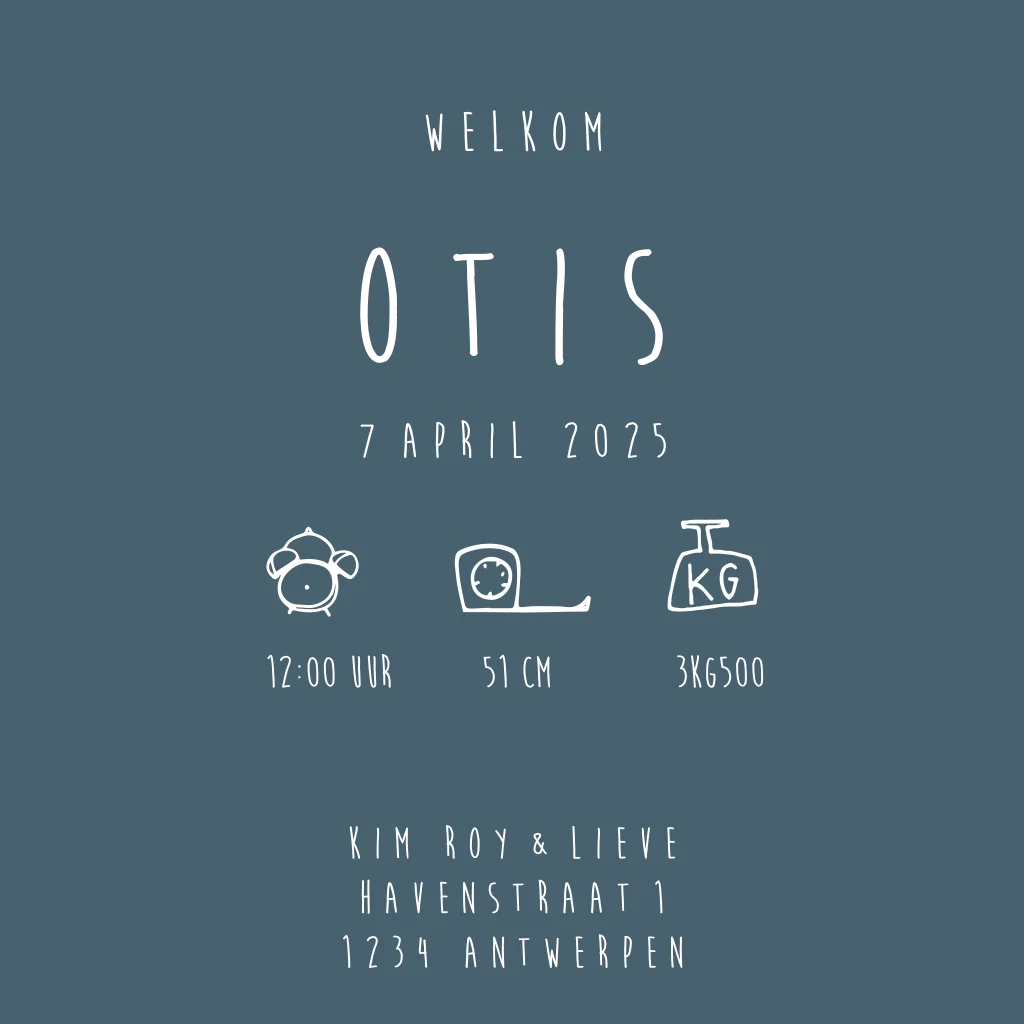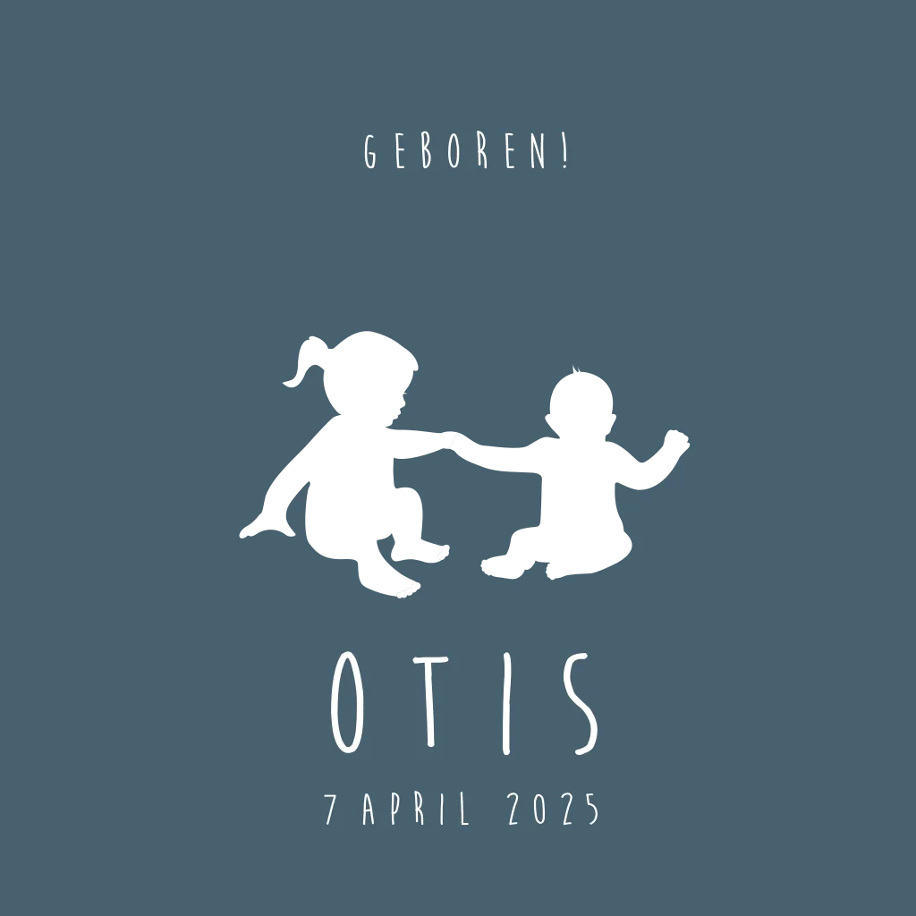 Er is een broertje geboren! Laat al jullie geliefden dit weten met dit stijlvolle geboortekaartje in het donkerblauw. Met een silhouetje van een zusje en een broertje, in roségoudfolie