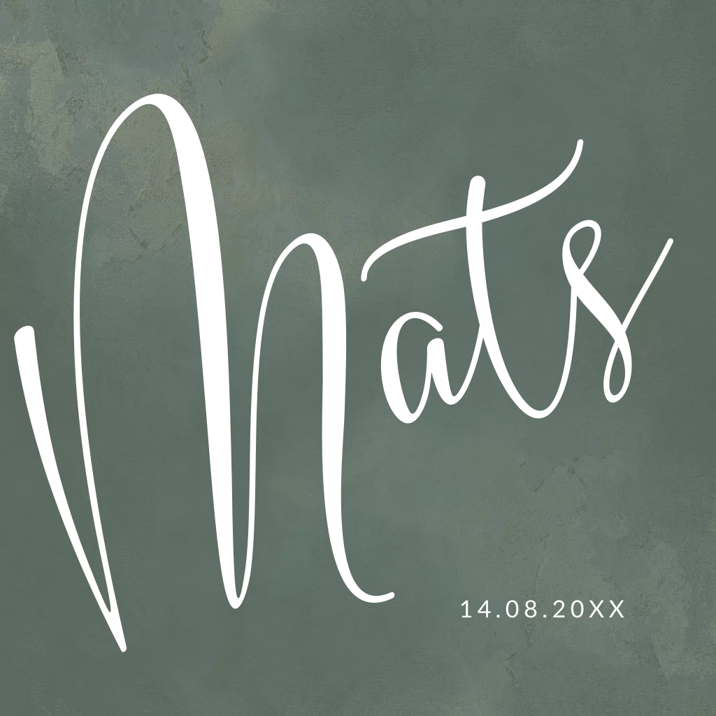Een stijlvol geboortekaartje voor jullie zoontje. Op de olijfgroene velvetlook achtergrond staat de naam met sierlijk geschreven letters in goudfolie, echt chique!Totaalprijs: 0 |