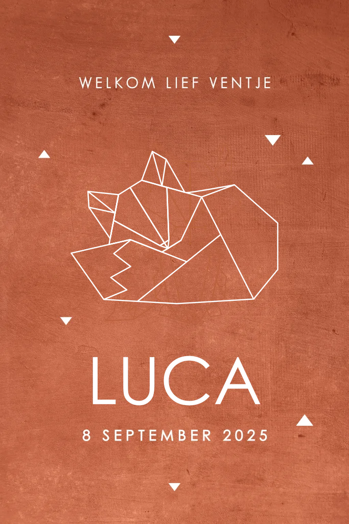 Een trendy en stoer geboortekaartje voor een jongen. De vos en de naam zijn met goudfolie afgewerkt. Personaliseer het kaartje in de editor en kies een bijpassende enveloppe.