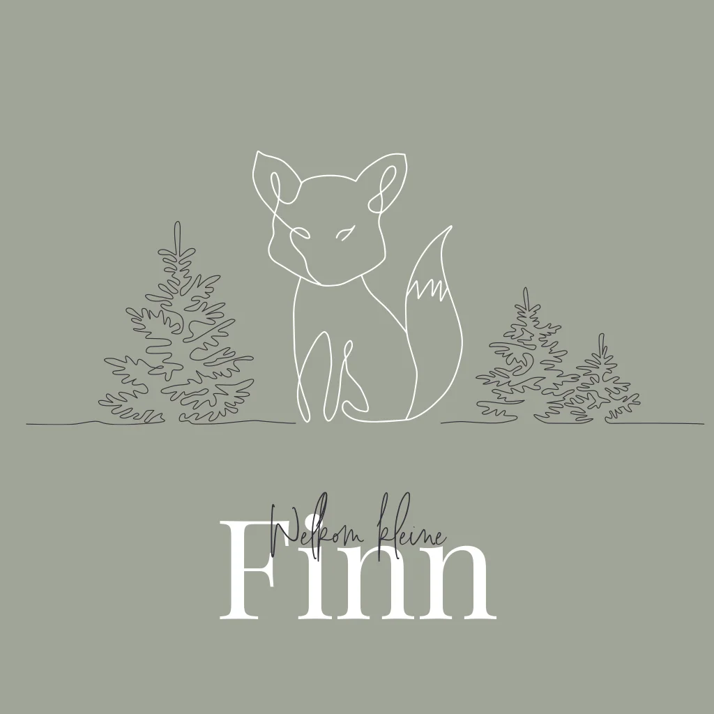 Vierkant stoer geboortekaartje met afgeronde hoeken in grijsgroen met een lijntekening van een vosje in het bos. Met het moderne lettertype is dit kaartje helemaal hip. Liever toch een andere kleur of lettertype? Dat kun je eenvoudig zelf naar eigen smaak aanpassen in de online editor.