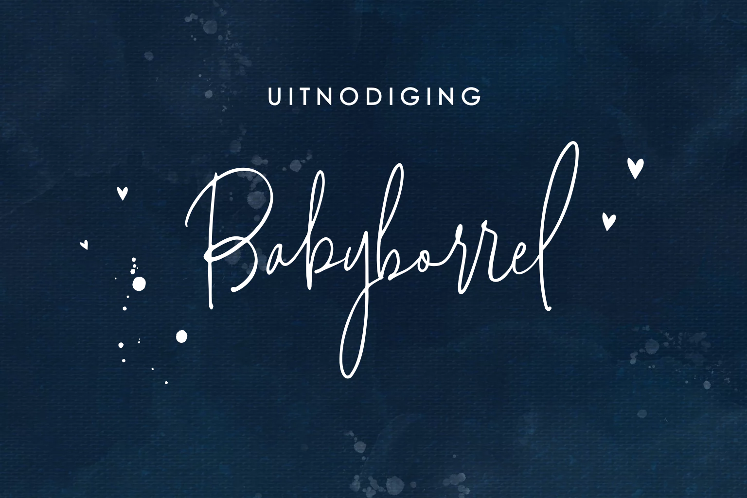 Liggende kaart uitnodiging babyborrel in donkeblauw met letters in goudfolie.Bekijk ook ons geboortekaartje.