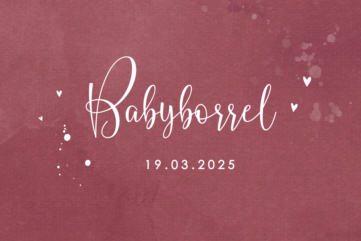 Stijlvolle uitnodiging voor een babyborrel meisje, roze achtergrond met hartjes en tekst in roségoud.Bekijk ook ons geboortekaartje.